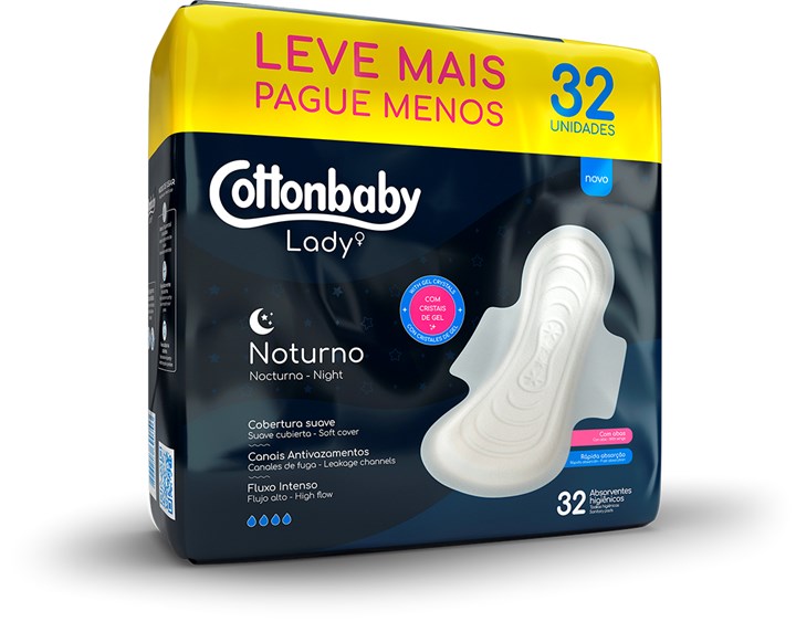 ABSORVENTE COTTONBABY LADY NOTURNO 32UN SUAVE C/ABAS