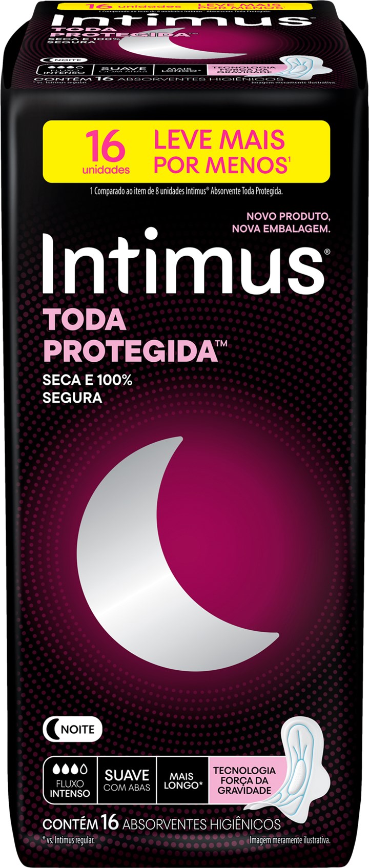 ABSORVENTE INTIMUS GEL NOTURNO TODA PROTEGIDA 16UNIDADES SUAVE C/AB LEVE MAIS PAGUE MENOS