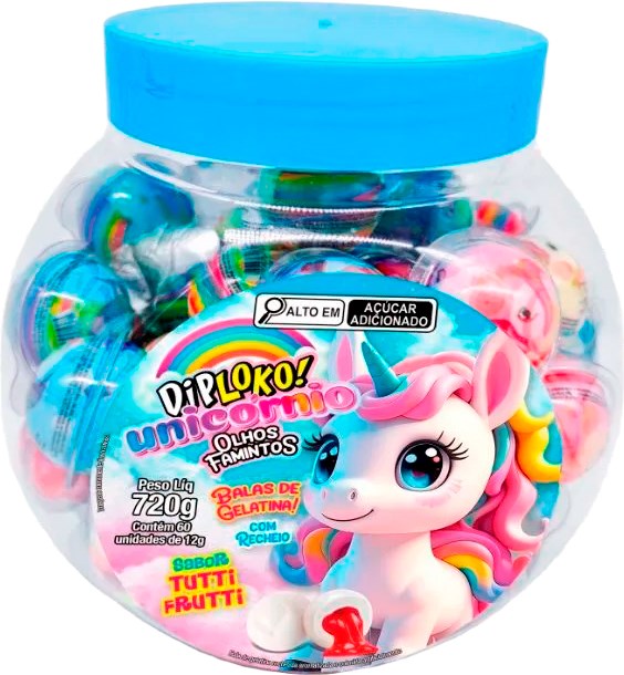BALA GELATINA DIPLOKO 12G OLHOS FAMINTOS UNICÓRNIO POTE