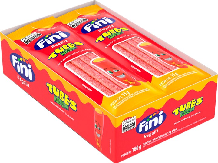 BALA GELATINA FINI 15G TUBES MORANGO COM LARANJA CITRICA