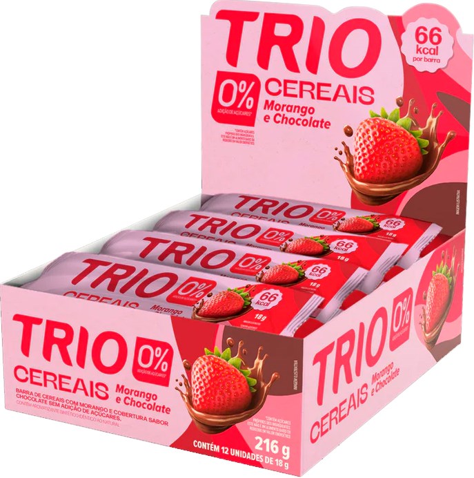 BARRA DE CEREAL TRÍO 18G MORANGO E CHOCOLATE - ZERO AÇÚCARES