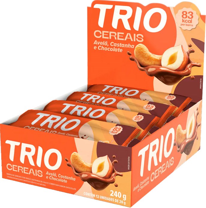 BARRA DE CEREAL TRÍO 20G CASTANHA AVELÃ E CHOCOLATE