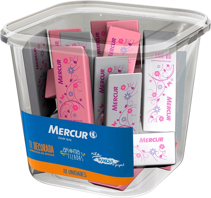 BORRACHA ESC MERCUR TR DECORADA ROSA/BCA