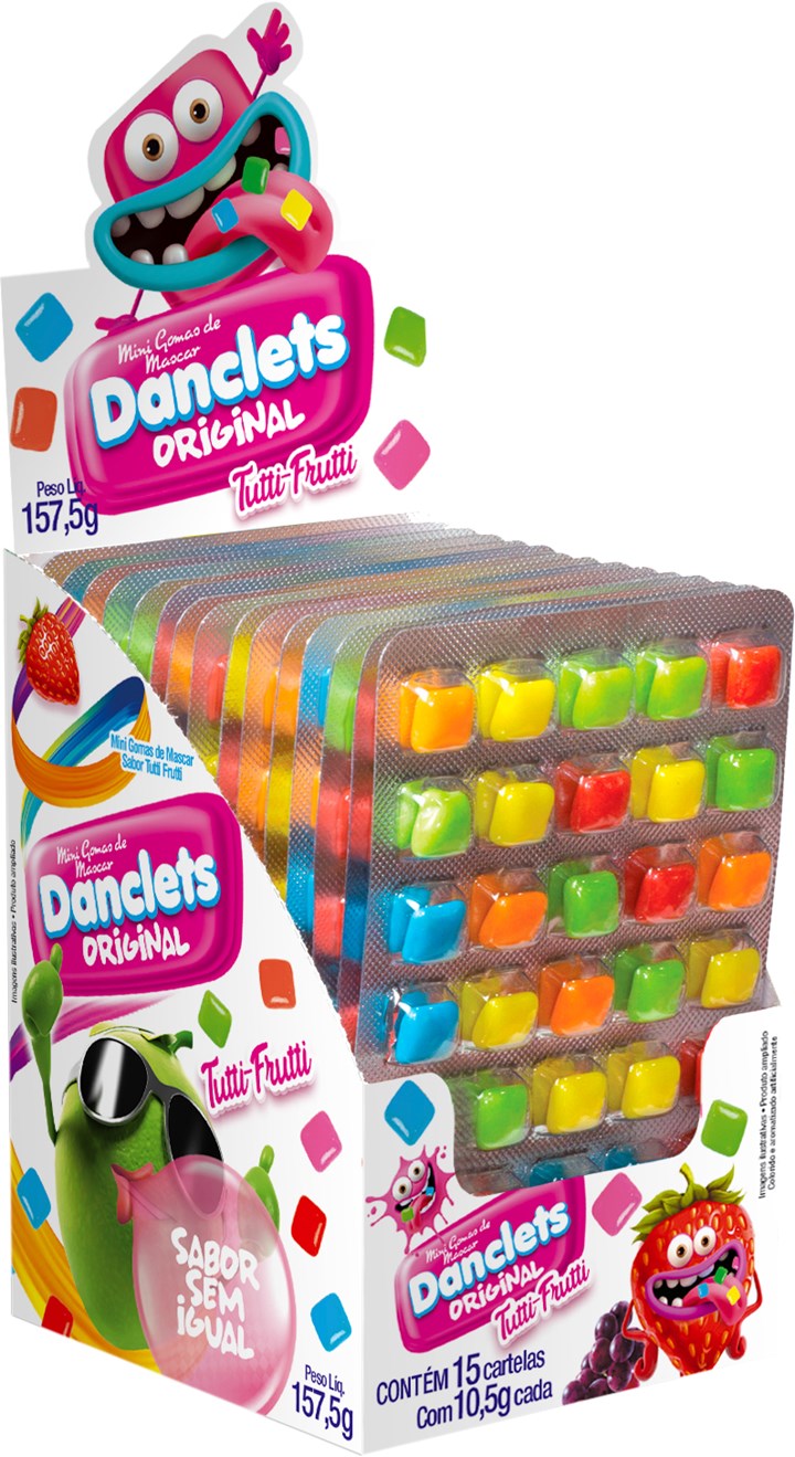 CHICLETE DANCLETS 10,5G TUTTI FRUTTI 35 SORTIDO CARTELA
