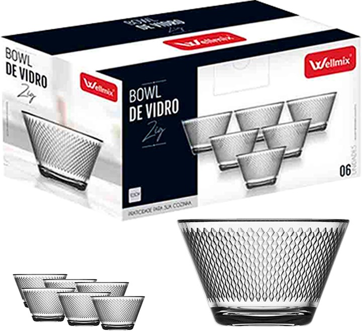 CONJUNTO TIGELA DE SOBREMESA BOWL DE VIDRO ZIG 300ML