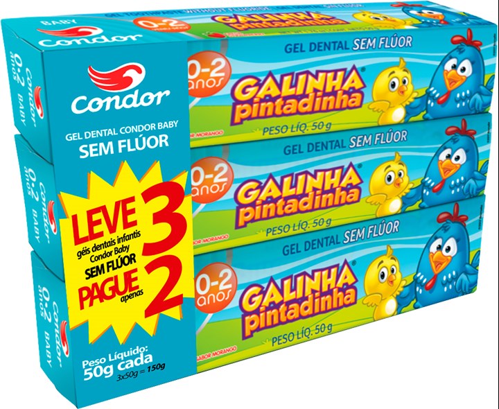 CREME DENTAL CONDOR INFANTIL 50G SEM FLUOR GALINHA PINTADINHA LEVE 3 PAGUE 2