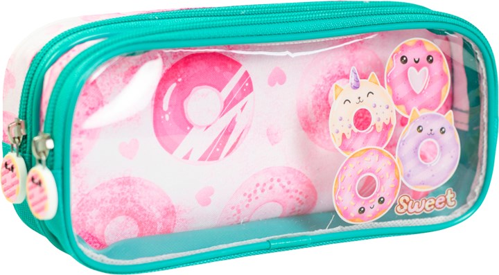 ESTOJO ESCOLAR KIT RETANGULAR INFANTIL SWEET DONUTS