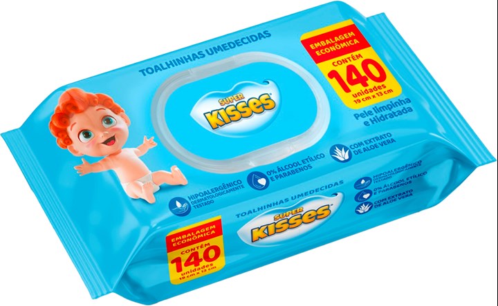 LENÇO UMEDECIDO KISSES 140F COM TAMPA FLIP TOP