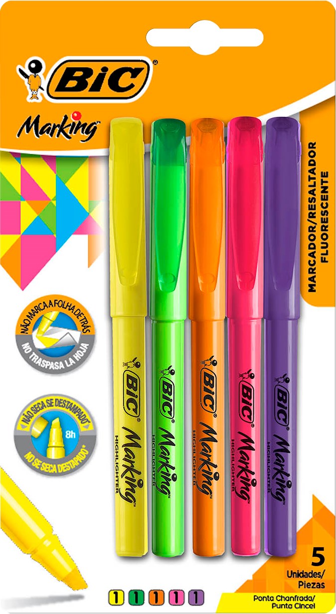 MARCADOR TEXTO BIC 5 CORES FLUO