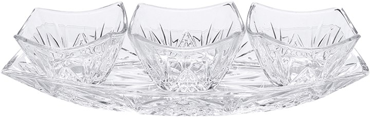 PETISQUEIRA DE VIDRO CLEAR ISADORA COM 03 BOWLS 170 ML E PRATO 30 CM EM CASA TEM