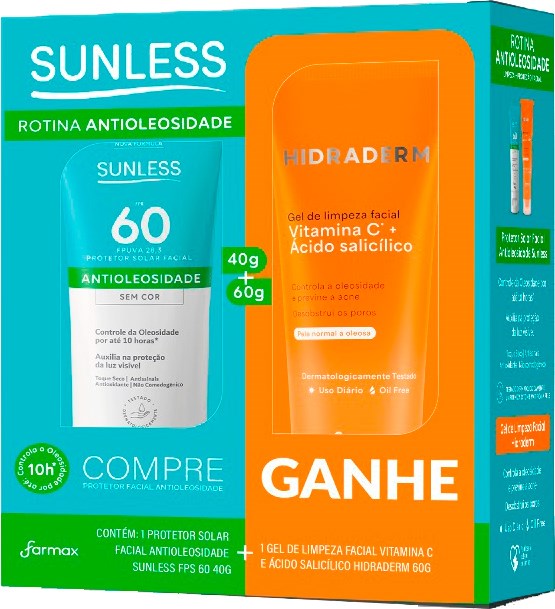 PROTETOR SOLAR SUNLESS FACIAL ANT OLEOSIDADE 40G FPS60 + GEL LIMPEZA